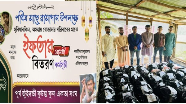 আনোয়ারা ( চট্টগ্রাম ) প্রতিনিধি পবিত্র মাহে রমজান উপলক্ষে অসহায় দরিদ্র ও নিম্নবিত্ত পরিবারের মাঝে ইফতার সামগ্রী বিতরণ করে সামাজিক দৃষ্টান্ত স্থাপন করেছেন আনোয়ারার পূর্ব জুঁইদন্ডী ফুটন্ত ফুল একতা সংঘ।