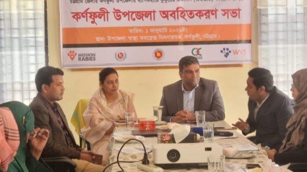 কর্ণফুলী ( চট্টগ্রাম )  প্রতিনিধি  কর্ণফুলীতে মরণব্যাধি জলাতঙ্ক রোগ নির্মূলের লক্ষ্যে কুকুরের টিকাদান কর্মসূচি বাস্তবায়ন উপলক্ষে এক মতবিনিময় সভা অনুষ্ঠিত হয়েছে। আগামী ৫ থেকে ৯ জানুয়ারি পর্যন্ত উপজেলার প্রতিটি ইউনিয়নে